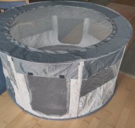 Welpen Auslauf Außenmaße ca. 125x 64cm Höhe mit Reißverschlüssen und Klettverschlüssen. Faltbares Modell mit Tragetasche. Zustand siehe Bilder. Der Verkauf erfolgt unter Ausschluss jeglicher Sachmänge...