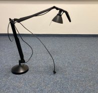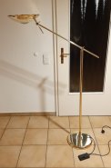 Verschenke Deckenfluter, der auch als Leselampe zu verwenden ist, da die Lampenschale auf der Unterseite eine Milchglasscheibe hat. Messing, 120cm hoch, der schwenkbare Arm ist 70cm lang, die Lampensc...