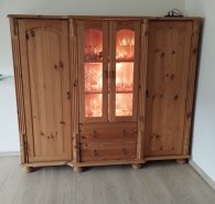 Ich biete hier ein Sideboard in Massivholz mit einer beleuchteten Mittelvitrine, gelaugt, geölt an.