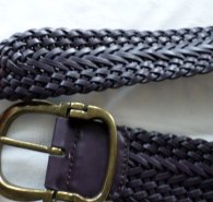 schöner Lederflechtgürtel für Damen, dunkelviolett, Länge 85cm Breite 5,7cm mit goldfarbener Metallschnalle