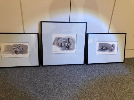 Kunstdrucke von Ernst Pohlmann, handsigniert. In schwarzen Metallrahmen mit Passepartout. Maße mit Rahmen: Zwei Bilder 41 x 31 cm, ein Bild 41 x 41 cm.